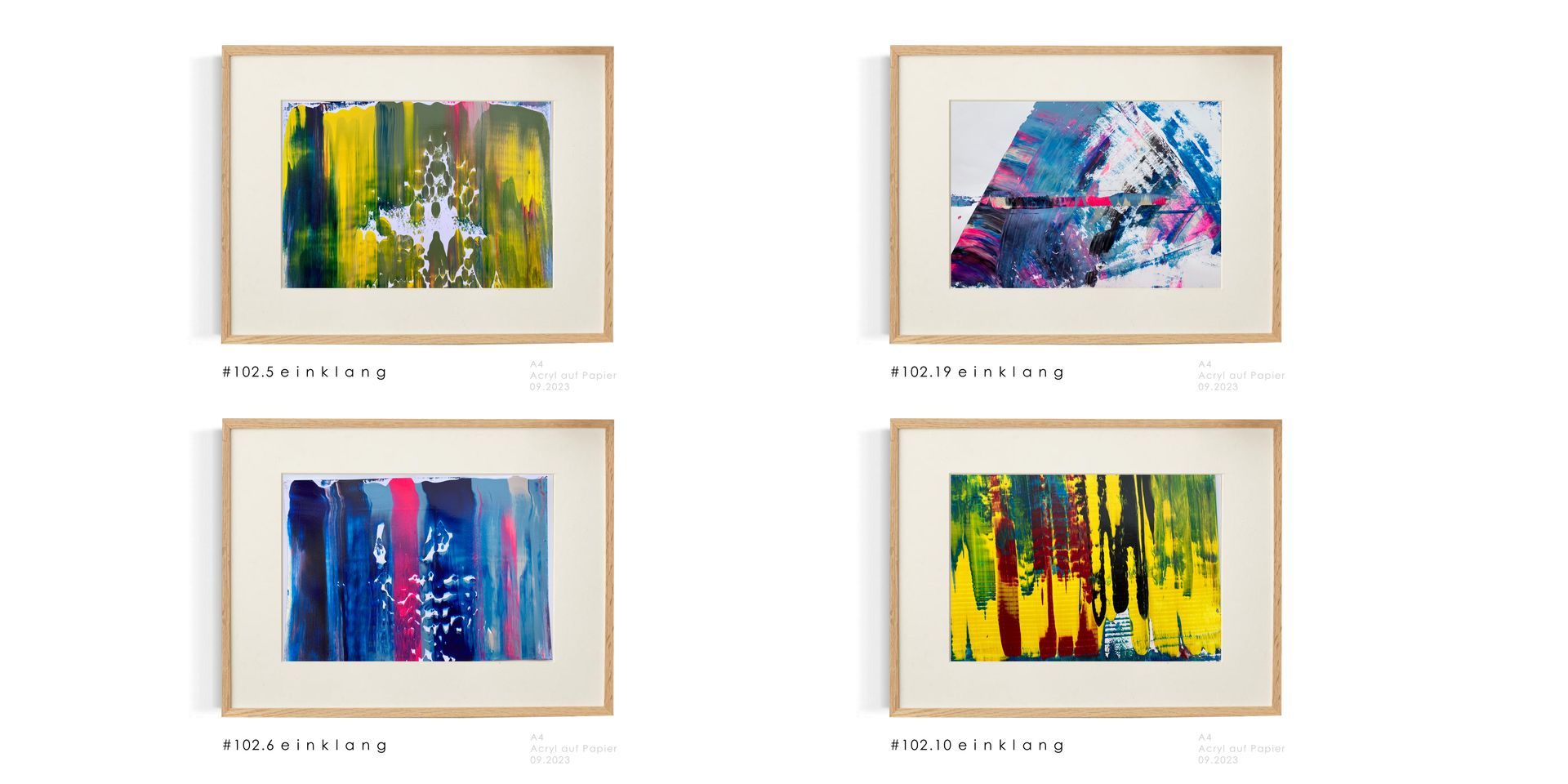 Diese Serie, bestehend aus 24 einzelnen Bildern in A3 & A4 und trägt den Namen einklang. Hierbei habe ich mit vielen Farben experimentiert und so erhielt jedes einzelne Werk seine eigene Note. Farbenfroh & einfach steht jedes für sich trotzdem im Einklang mit den anderen. Verschieden Techniken und Farbkombinationen machen diese Serie zu etwas besonderem und ich freue mich sehr diese hier nun präsentieren zu können. Jedes einzelne trägt seine Emotionen und seine eigene Geschichte.