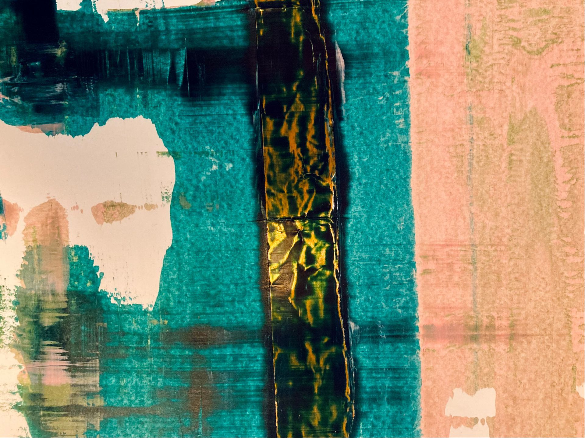 Dieses Werk hat eine Größe von 40x50 und ist mit Blattgold unterlegt. Dieses schimmert im Licht hindurch und verleiht dem Bild eine gewisse Eleganz welche sich im Farbverlauf wieder findet. Leichtigkeit & Harmonie sind die ersten Gedanken die ich habe wenn ich dieses Bild betrachte.