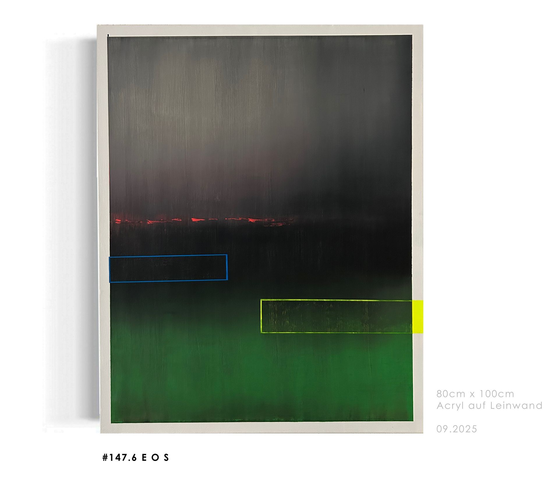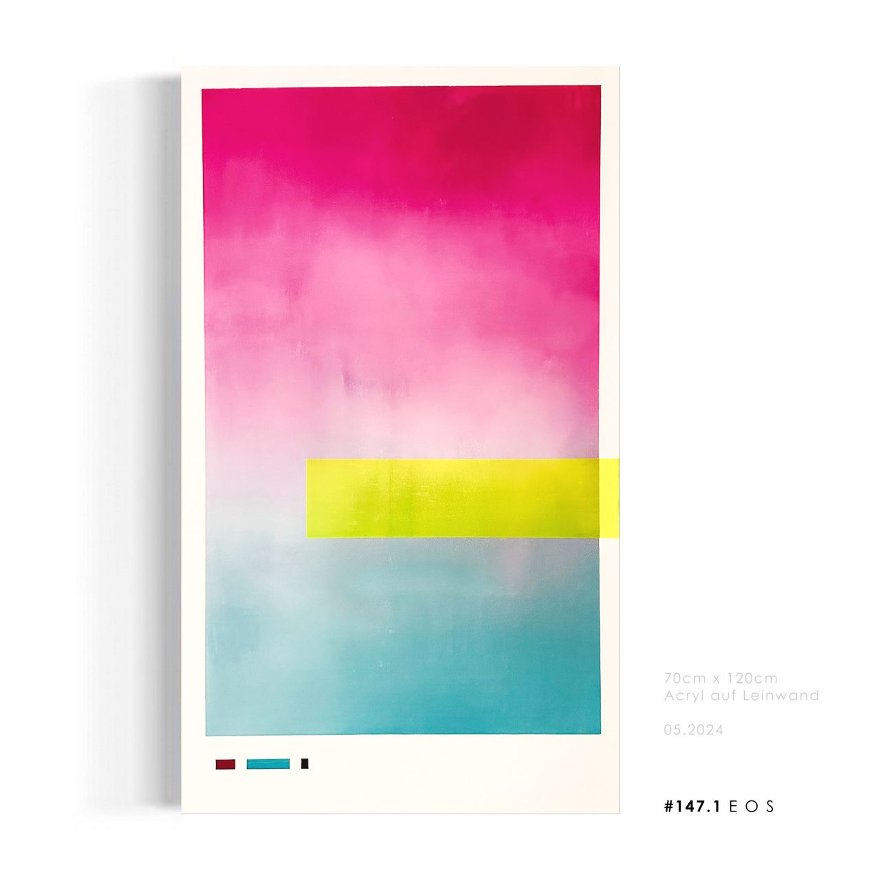 Die Einfachheit in den Farben und das Zusammenspiel von wenigen Elementen bilden den Grundstein für dieses Werk, was für sich steht.
